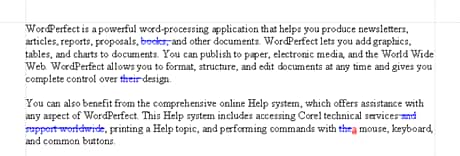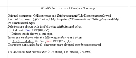 If you are working with someone else to create a document, you can collaborate more easily by using the document comparison functionality in WordPerfect®. It allows you to compare the current version of a document to an earlier version and display the changes that were made.