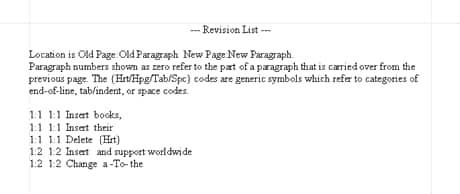 In this revision list, only a description of the changes made are displayed. The document text itself is not displayed.